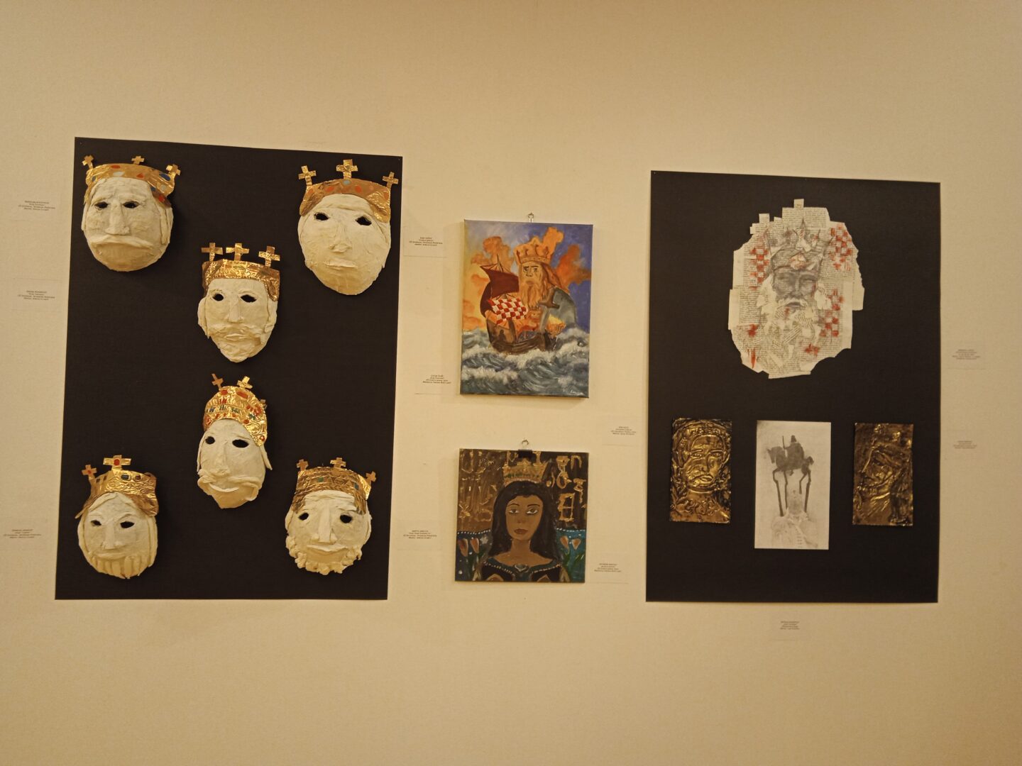 Učenici prošlogodišnjeg 5.A, 5.B i 5.C, pod vodstvom mentorice, profesorice Ankice Cicvarić su, na Vjeronaučnoj likovnoj grupi, izradili maske hrvatskih kraljeva. Njihovi radovi su dio postava izložbe u Sveučilišnoj galeriji, otvorene do 25. studenog